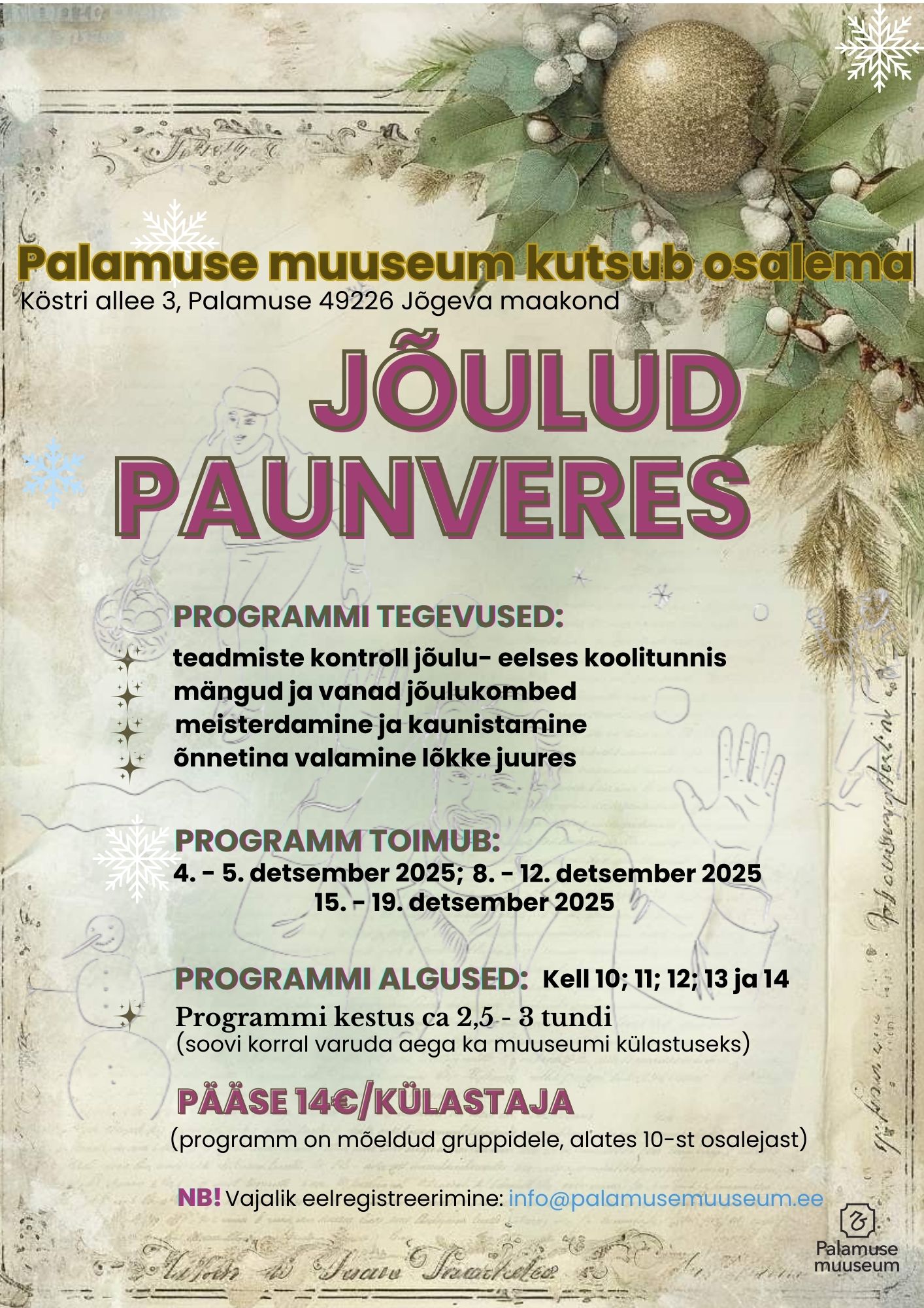 Palamuse muuseum kutsub külla 20. ja 21. oktoober, mõlemal päeva kell 12.00 Kas tead, kuidas nägi välja su vanaema Aabits? Tule avasta, kuidas tähed ja lood on ajas muutunud! Kõigepealt uurime koos juhendajaga vanas koolimajas, millised aabitsad on olnud läbi aegade nii Eestis kui mujal, ja siis teeme...