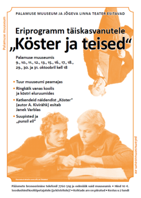 Palamuse muuseumi ja Jõgeva linna teatri õhtune eriprogramm viib külastaja ringkäigule, tutvustades „Kevade“ algkujusid ning raamatu- ja filmitegelasi läbi tõelisuse ja fantaasia. Köstrile ja tema ametikohustustele pöörame aga suuremat tähelepanu. Pärast muuseumi peamaja ja kooliruumidega tutvumist saate köstri saalis vaadata katkendeid Andrus Kivirähki näidendist „Köster“, mida esitab Jõgeva harrastusnäitleja Janek Varblas. See pole talle esimene kokkupuude Kivirähki loominguga – eelmisel aastal tuuritas mööda Eestit tema mängitud Mauno lavastusest „Aabitsa kukk“, kus peategelaseks sootuks teistsugune karakter. Nüüd on aga „Köster“ maandunud lausa enda kodus, sest just neis tubades päris köster omal ajal elaski.