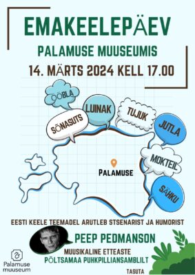 Palamuse muuseumis tähistame emakeelepäeva 14. märtsil kell 17.00. Külas stsenarist ja humorist Peep Pedmanson ning muusikalist vahepala pakub Põltsamaa puhkpilliansambel. Sündmuse on tasuta.